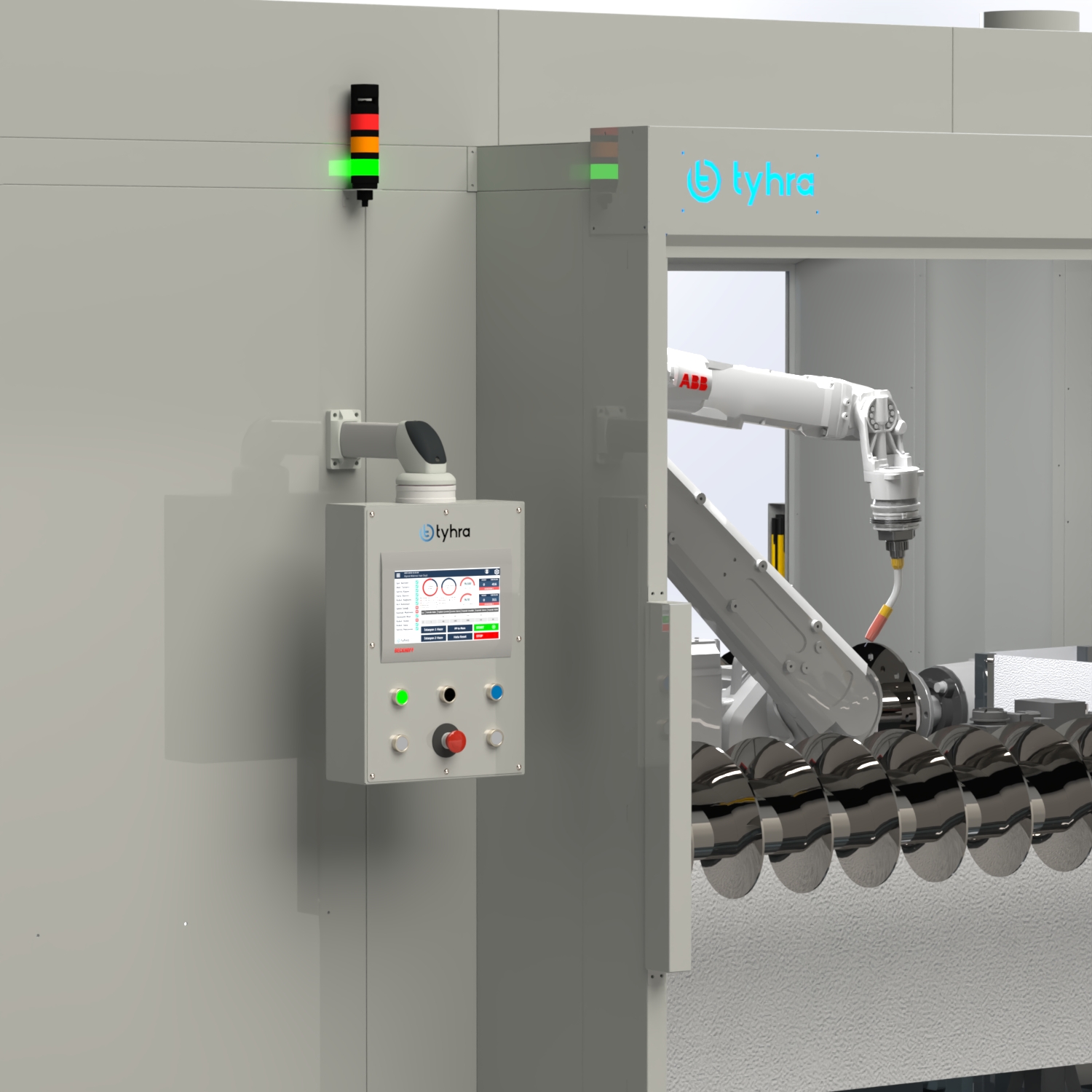 Tyhra robotik kaynak hücresi, güvenlik ve üstün işlevsellik esas alınarak üretilmiştir. Sağlam yapısı sayesinde uzun ömürlü bir kullanım sunar ve kolay taşınabilir özelliği ile robotik uygulamalarda verimi en üst düzeye çıkarmak için özel olarak tasarlanmıştır.
