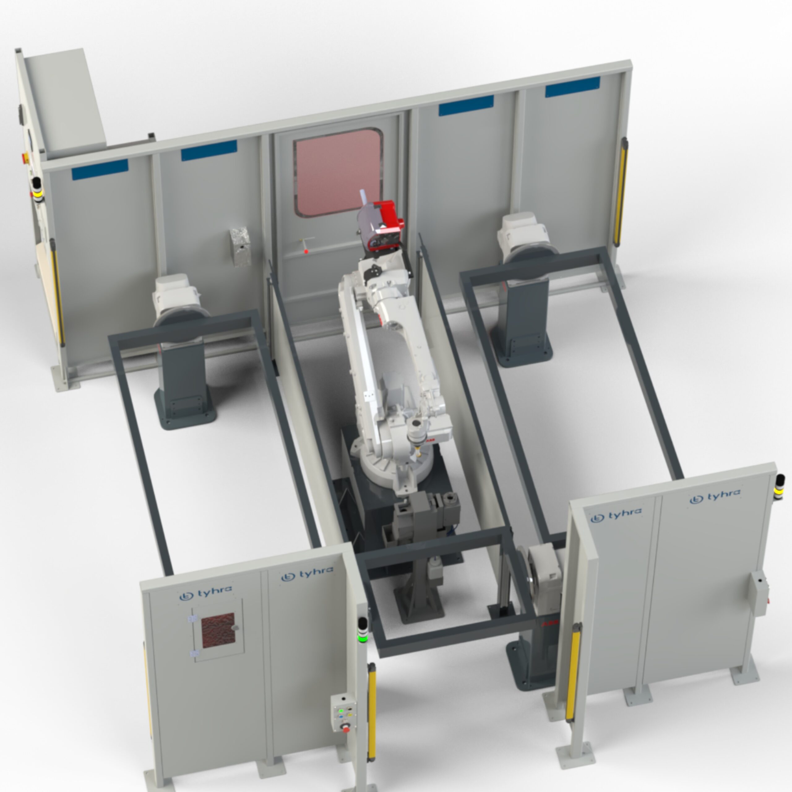 Kompakt tasarımlı, üç istasyonlu, orta boyutlu üretimler için tasarlanmış robotik kaynak çözümü.