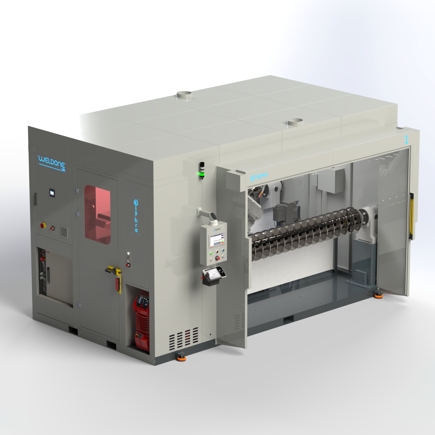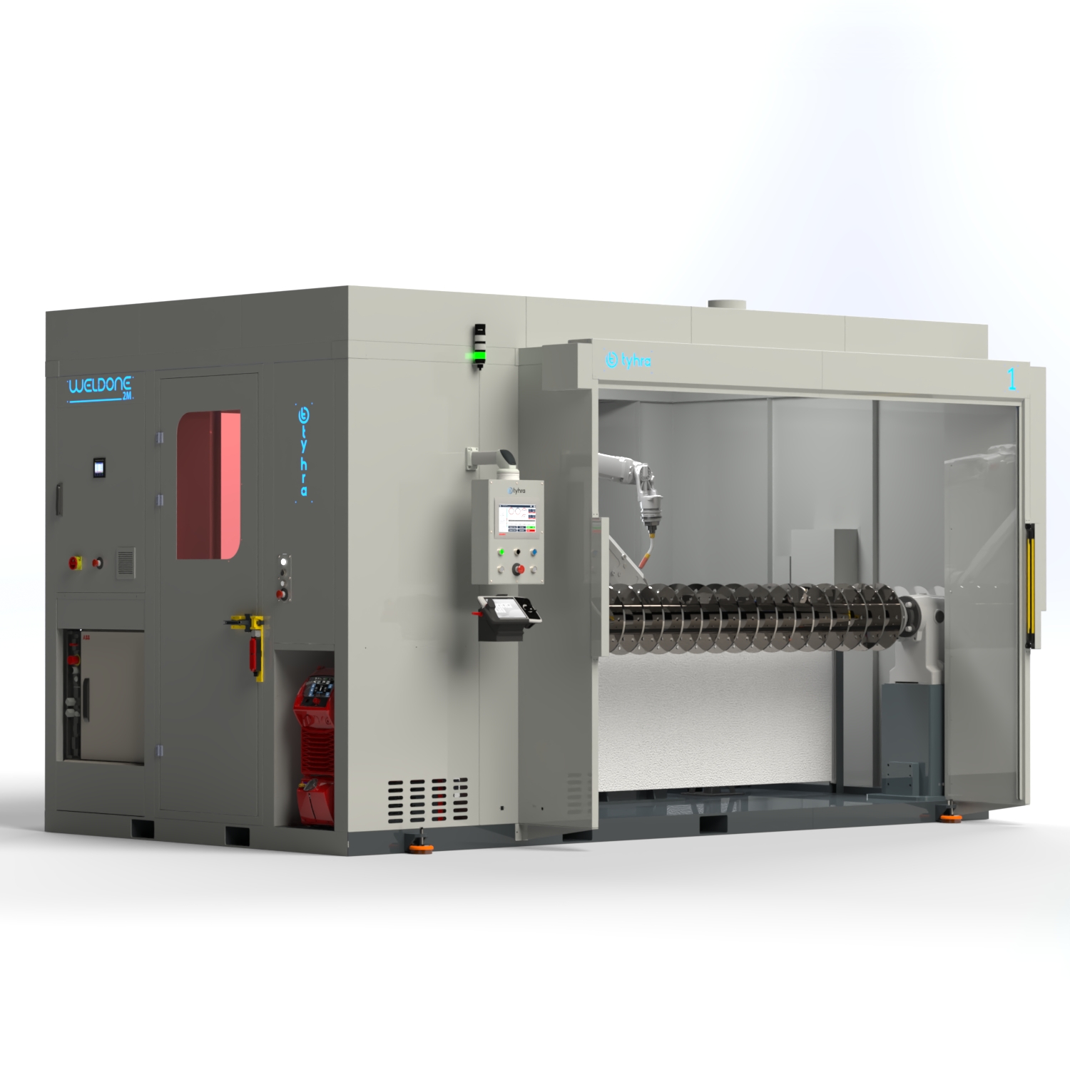 Tyhra robotik kaynak hücresi, güvenlik ve üstün işlevsellik esas alınarak üretilmiştir. Sağlam yapısı sayesinde uzun ömürlü bir kullanım sunar ve kolay taşınabilir özelliği ile robotik uygulamalarda verimi en üst düzeye çıkarmak için özel olarak tasarlanmıştır.